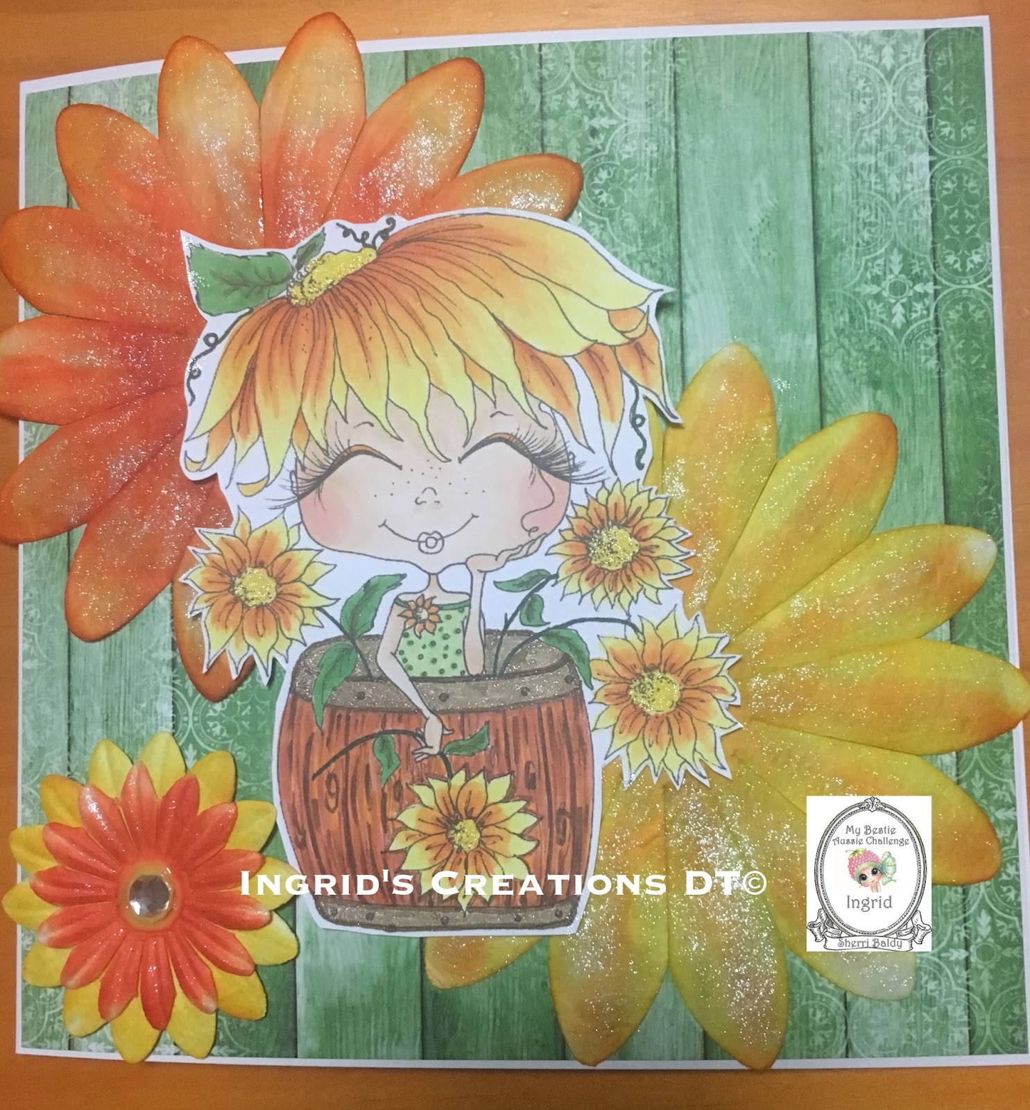 The other Flowers are by Petaloo (color Me Craze) they have been colored using Copic's YR09, YR18 for the orange ones and Y38, Y18 then I used colorless blender dripped on to flower to spread color over entire flower.
